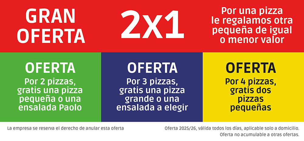 Ingrediente extra 1,20 – Todas las pizzas pueden llevar picante, pídalo – IVA INCLUIDO